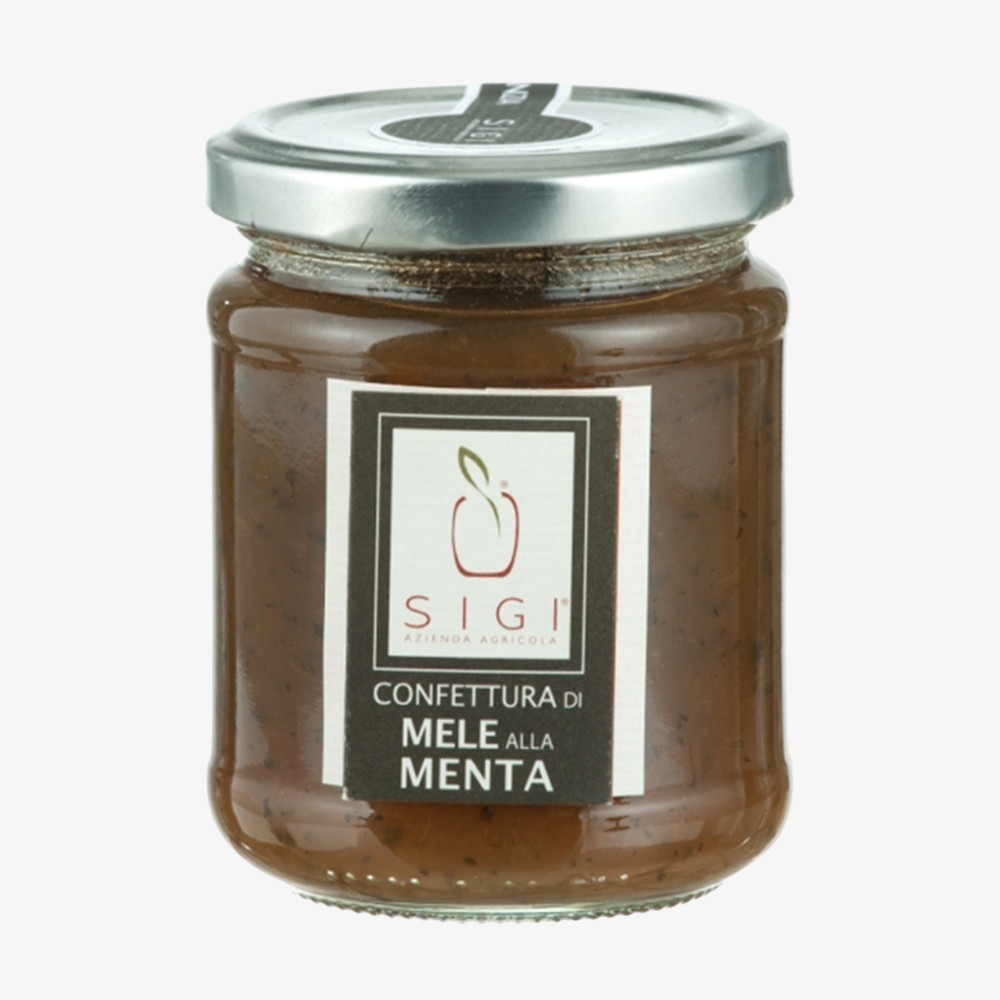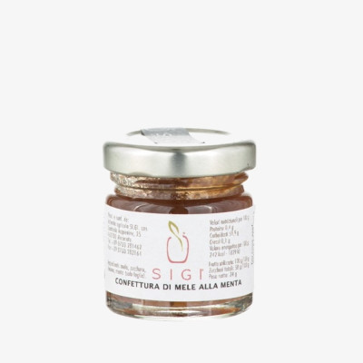 - Mela (60%), zucchero, limone e foglie di menta (1%)